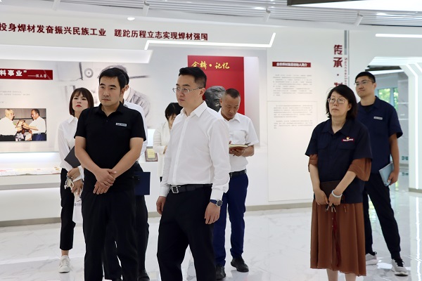 會(huì)前,王文雷一行參觀了高速鍍車間、國(guó)家級(jí)企業(yè)技術(shù)中心和金橋記憶展館,對(duì)焊材行業(yè)進(jìn)行深入了解,對(duì)金橋集團(tuán)數(shù)字化、智能化、綠色化發(fā)展表示稱贊。