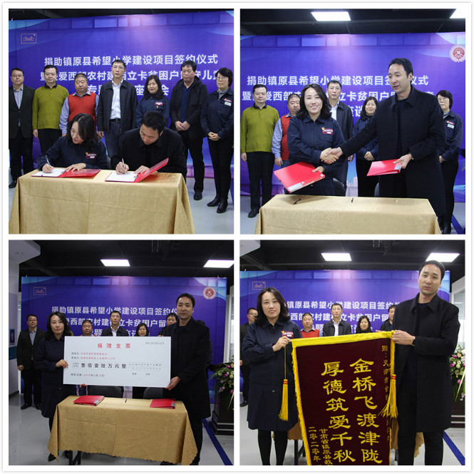 1月10日,捐助鎮原縣希望小學建設項目簽約儀式,暨關愛西部農村建檔立卡貧困戶留守兒童專題座談會在金橋焊接培訓基地圓滿召開。活動由集團黨委副書記、金橋慈善基金會秘書長李紅梅主持。