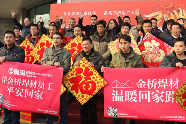 金橋焊材集團(tuán)員工代表在集團(tuán)門前宣誓:傳承企業(yè)精神,打造“焊材強(qiáng)國”。